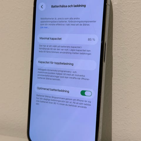Batteriets maximala kapacitet visas som 82 % på skärmbilden.