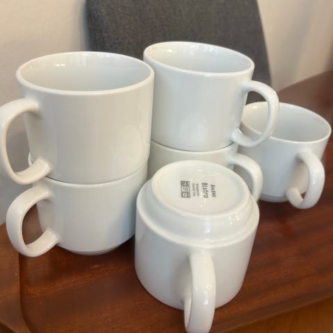 Kannor i vit porslin. Setet består av fyra mindre kannor i olika volymer, där några är märkta med volymangivelse på utsidan. Passar för servering av till exempel mjölk, grädde eller sås vid bordet eller i köket. Klassisk modell med handtag och pip för enkel upphällning.