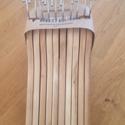 URETRO Trägalgar klädgalgar i naturträ med metallkrokmed firmornas namn