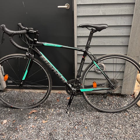 Trek Domane, two series. Nyskick, inte cyklat 10 mil ens. Köpte den på cykelstället i Luleå. Men då jag fick besvär med ryggen så har den fått stå. Tvåhjulsmästarna i Piteå har bedömt den i nyskick. Den har stått i villan på vår övervåning hela tiden. Ramen är 60 och och växling shimano 105. Ett klipp för den som vill ha en billig landsvägscykel.