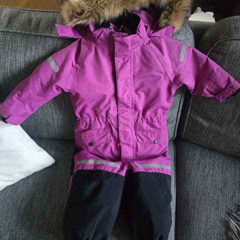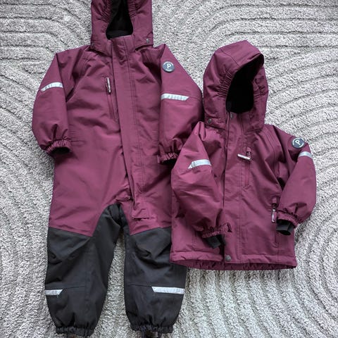 Didriksons overallset för barn i storlek 80. Setet består av rosa jacka med huva och svarta byxor med hängslen. Material i polyester. Jackan har reflexdetaljer, dragkedja och tryckknappar framtill samt avtagbar huva med fuskpäls. Byxorna har förstärkta knän och benslut, elastiska fotremmar och reflexdetaljer. Vattentätt yttertyg enligt märkning. Passar unisex barn i storlek 80. På bilderna ingår även en rosa vintermössa från Everest med fuskpälsdetalj, anpassad för kallt väder.