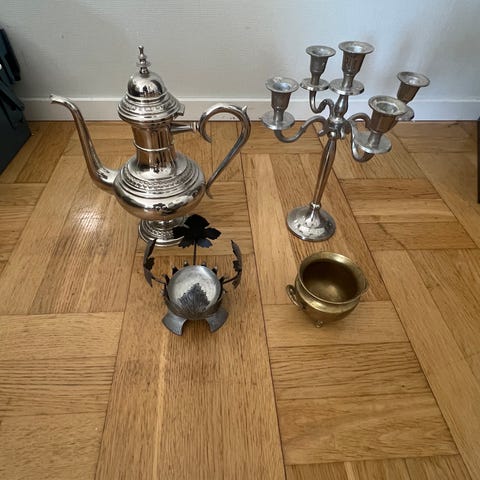 Vackra ljusstakar i silvermetall för 5 ljus vardera.