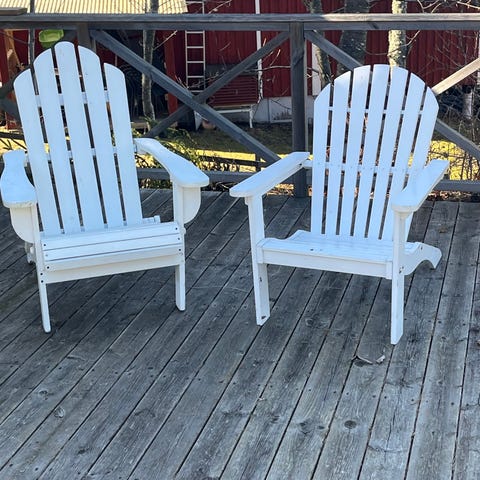 Vit trädgårdssoffa. Hjul på ena sidan.