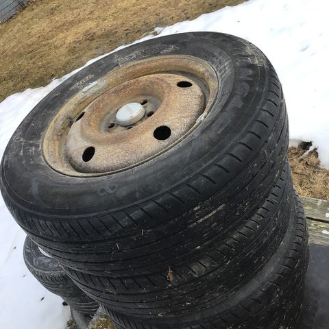 Hej säljer mina däck som jag endast kört en sommar med ca 7mm kvar på alla däck fälgar har ET 60 passar Transit connect torneo Ford skåp bilar