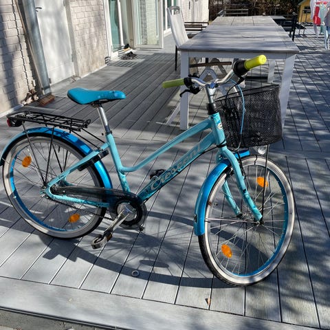 Säljer vår dotters fina cykel som nu blivit för liten för henne. Modellen är en Crescent Ran 24 tum med 3 växlar. Fotbroms. Använd 2 säsonger. Förvarad inomhus.