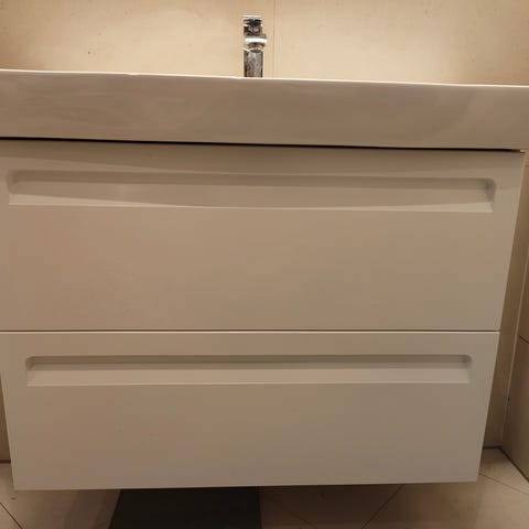 Tvättställ med blandare i vit färg. Ligger i min baklucka, så kan lämna den hos dig om du bor i stan eller väster eller söder om stan.