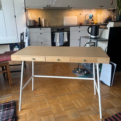 Säljer ett stilrent och kompakt skrivbord från IKEA (LILLÅSEN i bambu). Perfekt för hemmakontor eller studier.