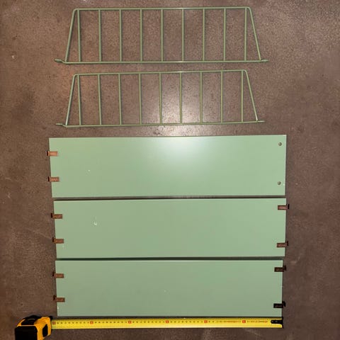 String pocket med extra gavel, totalt 3 hyllplan och 3 gavlar. Finns några små skav men går lätt att fylla i med lite färg.