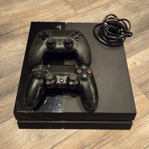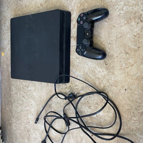 Säljer en Sony PlayStation 4, kontroll och strömkabel. Ps4 är väl använd och har två skruvar med gängpaj. Det går säkert att byta ut delar för att få den att fungera ännu bättre men jag känner inte att jag vill lägga den tiden på det, där av varför jag säljer den. Kontrollen är också väl använd med täcken på slitage på joysticken där silikonet har slitits bort.