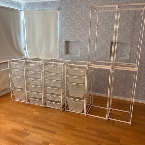 Extremt bra IKEA garderobsinredning, 40 bred och 60 djup. Får tyvärr inte plats med detta i nya boendet så kom om fynda. Jag har en lika stor uppsättning till om ni vill ha mer! Välkomna!