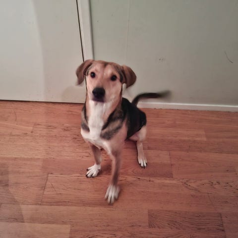 Mamma är finskspett och pappa är lapphund.