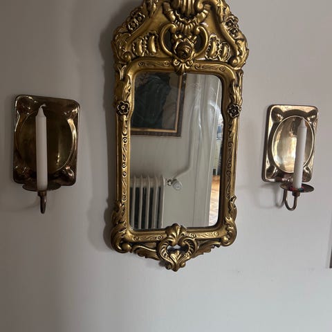 Spegeln har en naturlig patina som ger karaktär och ett levande uttryck.