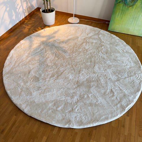 Säljer en mycket fin och kvalitativ rund barnrumsmatta av modellen Sjöborre, handtuftad i ull. Mattan är mjuk, slitstark och ger ett varmt och ombonat intryck i barnrum eller lekrum. Den är tillverkad för hand och levereras med äkthetsintyg.