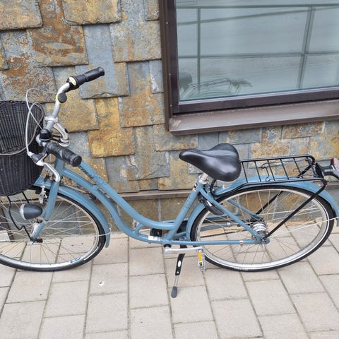 Utrustning: Cykelkorg fram, pakethållare bak, fungerande belysning och stöd.