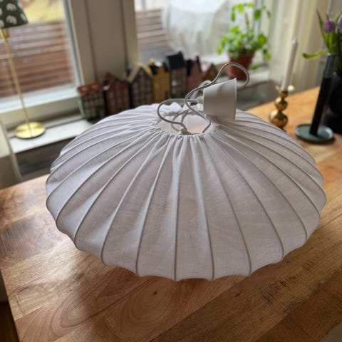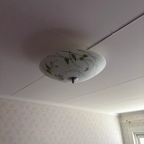 Takplafond som mäter 40cm i diameter. Fungerar fint och har kontakt. Märke North light.