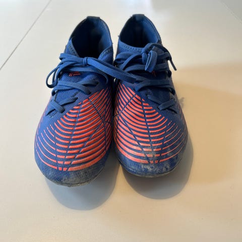 Adidas fotbollsskor i blå färg med vita detaljer. Skorna har snörning och dobbar anpassade för spel på natur- eller konstgräs (FG/AG beroende på planunderlag). Storlek 36 1/2 enligt märkning på insidan. Ovandel i syntetmaterial som ger en lätt sko med nära bollkontakt. Passar för fotbollsträning och matchspel.