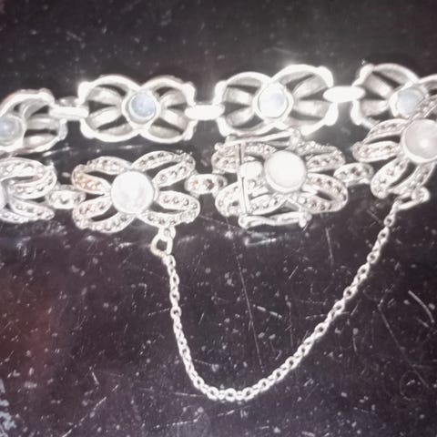 Ringen har en slät 14 karats guld ringskena och en infattning i silver runt en malakit. Vikt 4 gram varav 1,5 gr guld. Diameter 20mm.