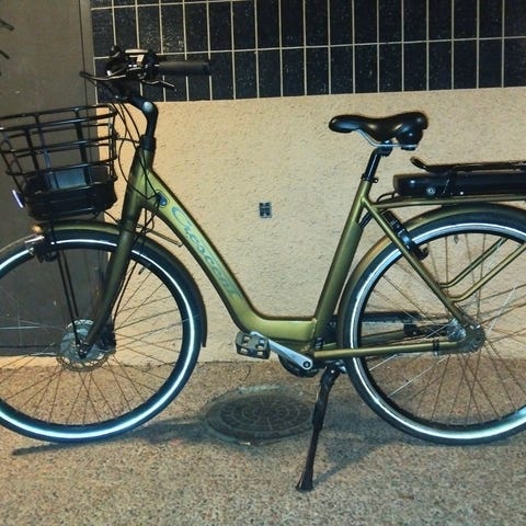 Elcykel för unisex med 28" hjul. Cykeln har lågt insteg, pakethållare bak med batteri monterat ovanpå samt skärmar fram och bak. Elmotorn sitter i framhjulet och cykeln är utrustad med upprätt körställning, sadel och styre anpassade för bekväm vardagscykling. Passar för pendling och ärenden i stadsmiljö eller på cykelvägar. Nyckel och laddare ingår.
