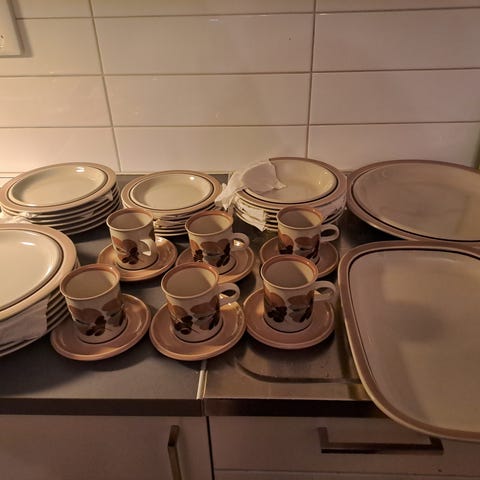 Gustavsberg Blåvitt kaffekoppar med fat i porslin. Setet består av flera koppar med tillhörande fat i klassiskt blåvitt mönster. Koppar och fat är märkta Gustavsberg/Graniteporlin på undersidan. Passar för servering av kaffe eller te och som komplettering till befintlig blåvitt-servis i porslin.