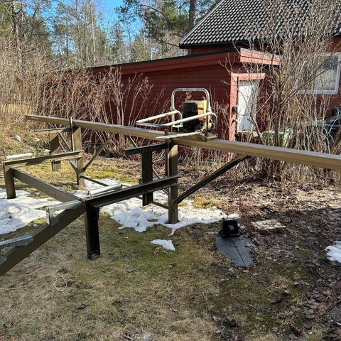 - Logosol F2+ med ES5 och manuell fjärrdrivning. 5 m sågbalk, toppstyrning, tre stocklyftar, F2-sågsläde, 50cm svärd och 1 kedja.