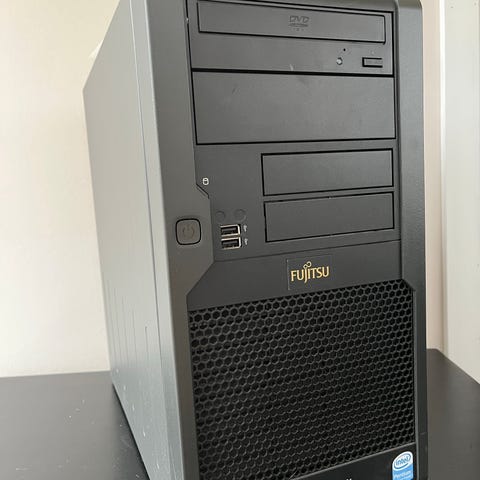 Oklart vilka specifikationer som processor, minne (Minne: Stödjer DDR3 ECC-minne, 16 GB eller 32 GB), lagring och grafikkort. Repad på toppen vid flytt annars i fint skick.