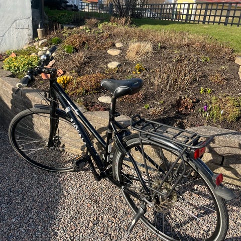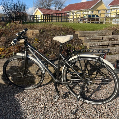 Lysen fram och bak. Handbroms fram och fotbroms bak. Låg i ramen så den passar lång som kort.Går att se på Norra öland ca: 2,5 mil norr om Borgholm.