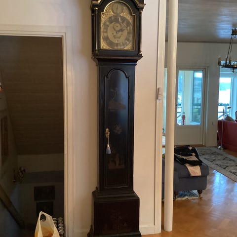 Moraklocka renoverad på 80-talet . Verk och lod finns men är inte använt på länge Vi säljer eftersom att vi flyttar till mindre boende