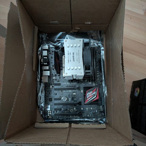 Intel Core i7-6700K processor monterad på ATX-moderkort Asus Z170 pro gaming med sockel LGA1151. Skickar även med en luftkylare från be quiet! med fläkt och kylfläns anpassad för sockel LGA1151.