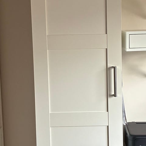 Ikea pax garderob äldre modell. Dörrarna är lite ojämna och baksidan har lossnat på ena sidan.