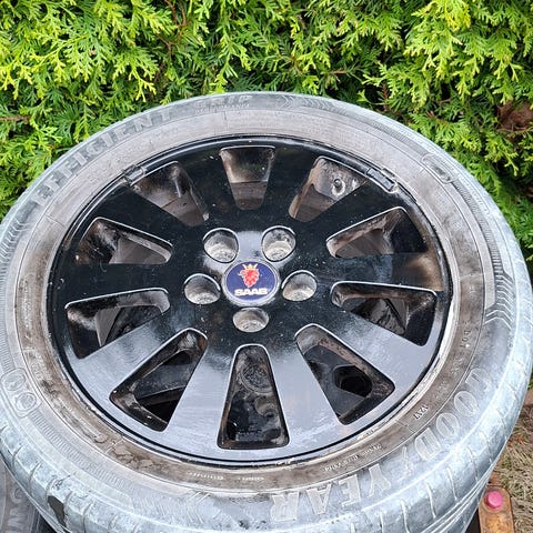 Begagnade sommardäck (4st) på fälg till SAAB 9-3