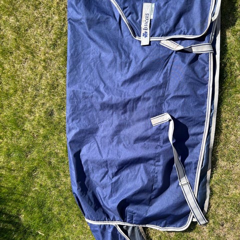 Täcket är endast använt ca 10 gånger och är i princip i nyskick. Det är helt, rent och alla spännen fungerar felfritt. Eftersom det knappt är använt är den ursprungliga fabriksimpregneringen helt intakt.