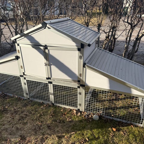 En mycket smidig bur som passar höns eller kaniner. Bra utegård och den är lätt att flytta. Inget ruttnar och den är väldigt lätt att hålla ren.