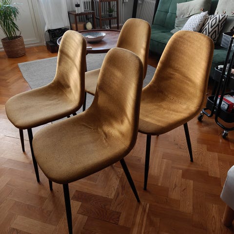 Två stycken matstolar. Rangliga men går bra att sitta på om försiktighet vidtas :) Hämtas på Värnhem!