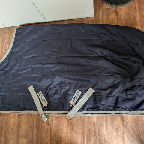 Ger ryggvärme före och efter träning. För avslappning och förebyggande av skador och för hästar med rygg- och korsproblem. Försedd med ringar framtill för enkel fastsättning och karborrband för fastsättning på täcke, ej använt. Tvättbart i 40 grader. Storlek: 1,17 x 1 meter.