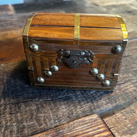 Smyckeskrin i svart material med rektangulär form. Locket är dekorerat med ett orientaliskt inspirerat motiv i ljusa och gröna nyanser. Skrinet har ett enkelt, slätt innerfack som kan användas för att förvara smycken eller små föremål. Lämplig för placering på en byrå, hylla eller badrum som en praktisk förvaringslåda. Mått cirka 11,5 x 8 x 5 cm.