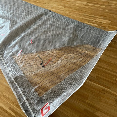Mainsail (storsegel) for Goodall Capricorn f18 Catamaran. 3 of the 6 slats (slattor) are missing