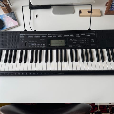 DJ Band elektroniskt keyboard i svart färg. Tangentbordet har inbyggda högtalare, digital display och flera funktionsknappar för volym, tempo, transponering och rytmer. Panelen visar 200 olika toner och 200 rytmer samt förprogrammerade demosånger. Passar för övning, enklare musikspel och som nybörjarinstrument i hemmet.