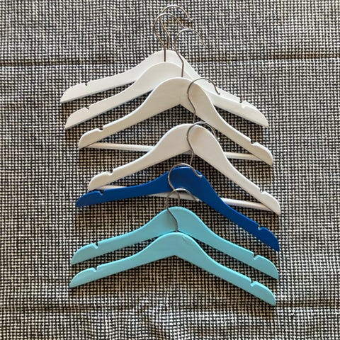 Klädhängare formad som en giraff i blå metall. Flera svarta knoppar längs hals och kropp ger plats för upphängning av kläder, väskor eller accessoarer. Monteras på vägg eller dörr genom förborrade hål i stommen. Passar exempelvis i hall, barnrum eller sovrum för överskådlig förvaring.