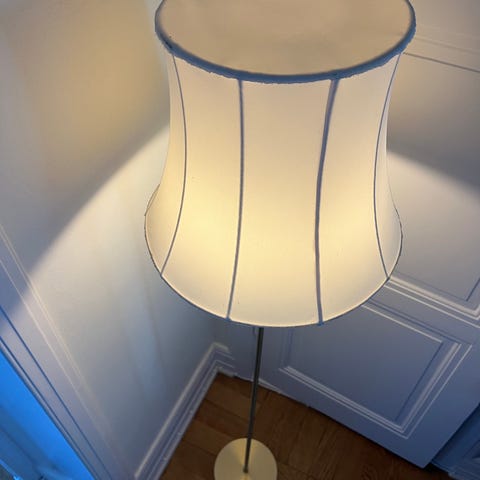 Mörkgrå golvlampa från IKEA. Heter Hektar.