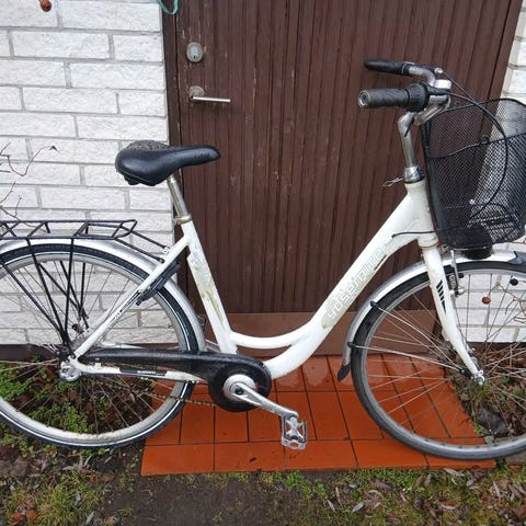 Damcykel 28tum med handbroms och fotbroms. Fungerar perfekt finns i Västervik.