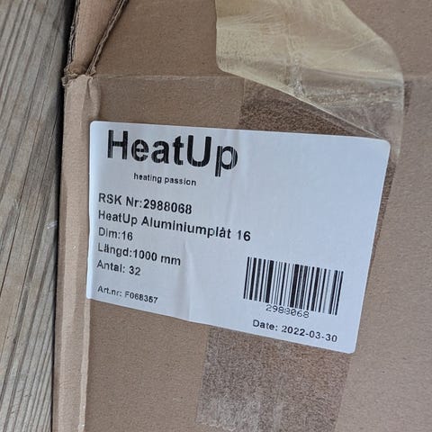 Wermgo värmefördelningsplåt 17 för golvvärmesystem. Plåtarna är avsedda för rör med dimension 17 mm och täcker en yta på ca 21kvm. 3 förpackningar oöppnade och helt nya.
