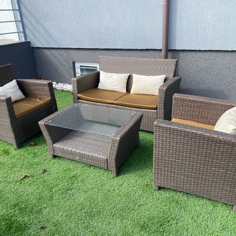 Bruna utemöbler i bra kvalitet av svensk tillverkare. Dynor ingår.