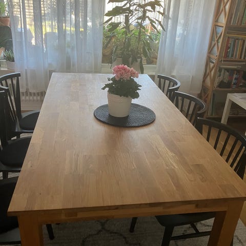 Den naturliga ådringen i eken ger bordet ett unikt uttryck och en varm, sofistikerad känsla som lyfter hela rummet. Detta är inte bara ett matbord – det är en investering i tidlös design och hållbar kvalitet.