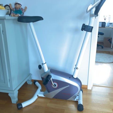 Pynero minicykel/pedaltränare i svart färg. Kompakt motionsredskap som placeras på golvet och används sittande, exempelvis framför stol eller soffa.