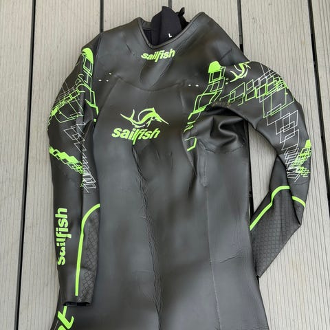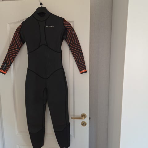 Sailfish Edge våtdräkt i storlek W-M. Helkropps våtdräkt i neopren med lång ärm och långa ben. Färg huvudsakligen svart med orange och vita detaljer. Dragkedja bak med rem för enkel stängning. Modellen är avsedd för dam och passar för simning och triathlon i öppet vatten eller bassängträning där våtdräkt används.