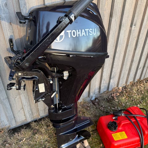 Tohatsu MFS6 som endast gått 5-6 h. Ser i princip ut som när jag köpte den ny på Marin & Fritid våren 2022. 6 hk 4-takt, inbyggd tank (går att koppla till extern), lång rigg. Lättstartad och lätthanterad (kan enkelt bäras till/från båten om man vill förvara hemma mellan vändorna).
