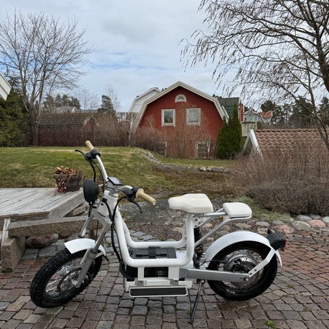 Elmoped röd med trehjulig design