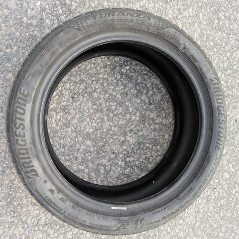 Jämt slitna, mönsterdjup 4,5 mm (nytt däck = 5,4 mm)