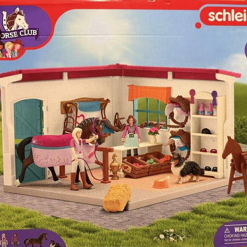 Schleich hästlekset med stall, hästtransport och flera tillbehör.