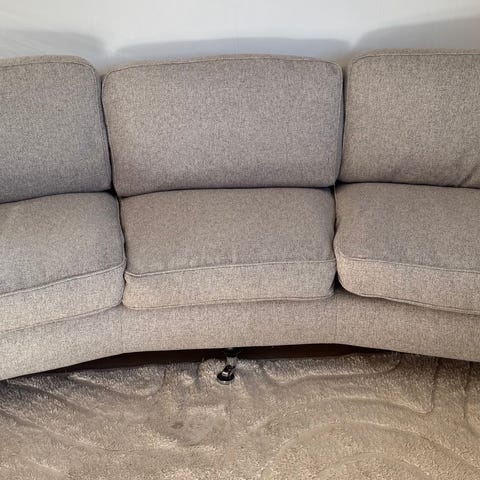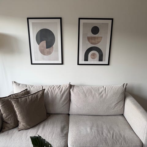 Fin och bekväm soffa. Beige/grå. Avtagbar klädsel på kuddarna som kommer vara tvättade vid hämtning.